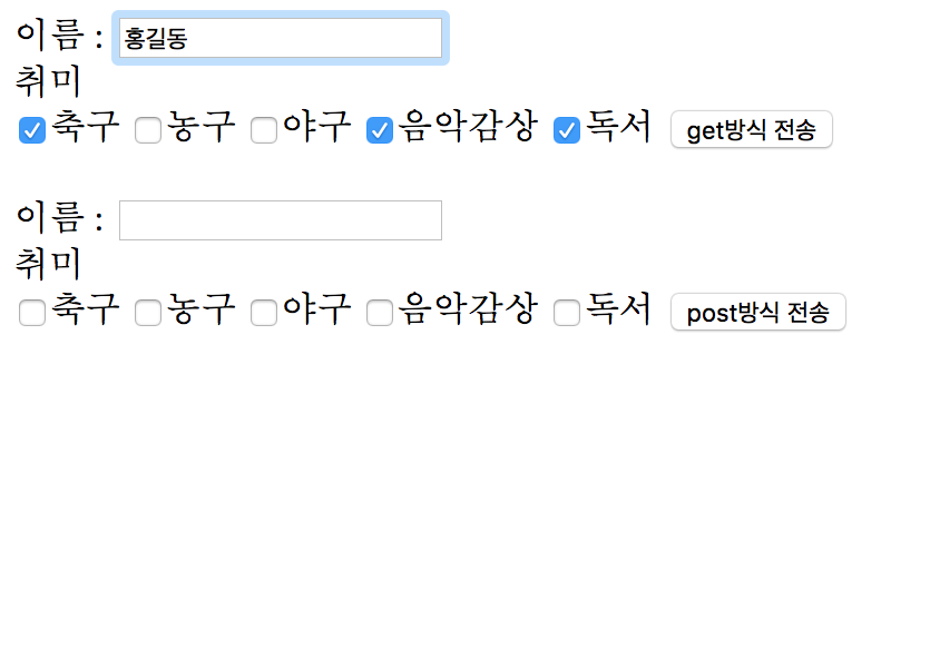 <input type="checkbox" name="hobby" value="음악감상"/>음악감상