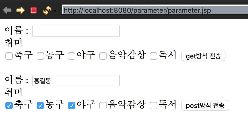 <input type="checkbox" name="hobby" value="농구"/>농구