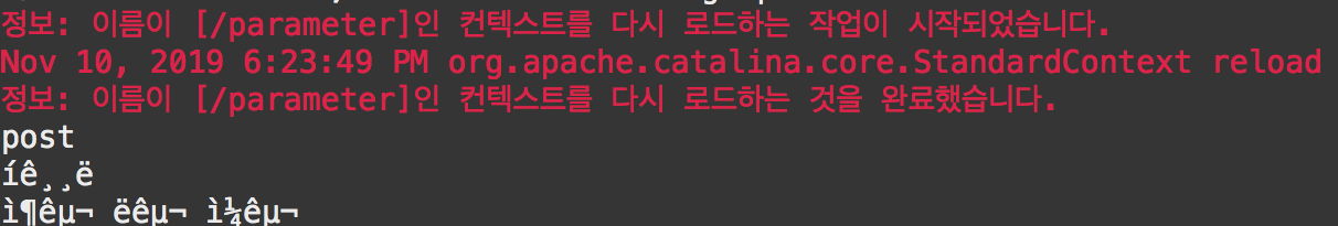 post방식에서는 다음의 코드를 doPost()에 추가 하여야 함