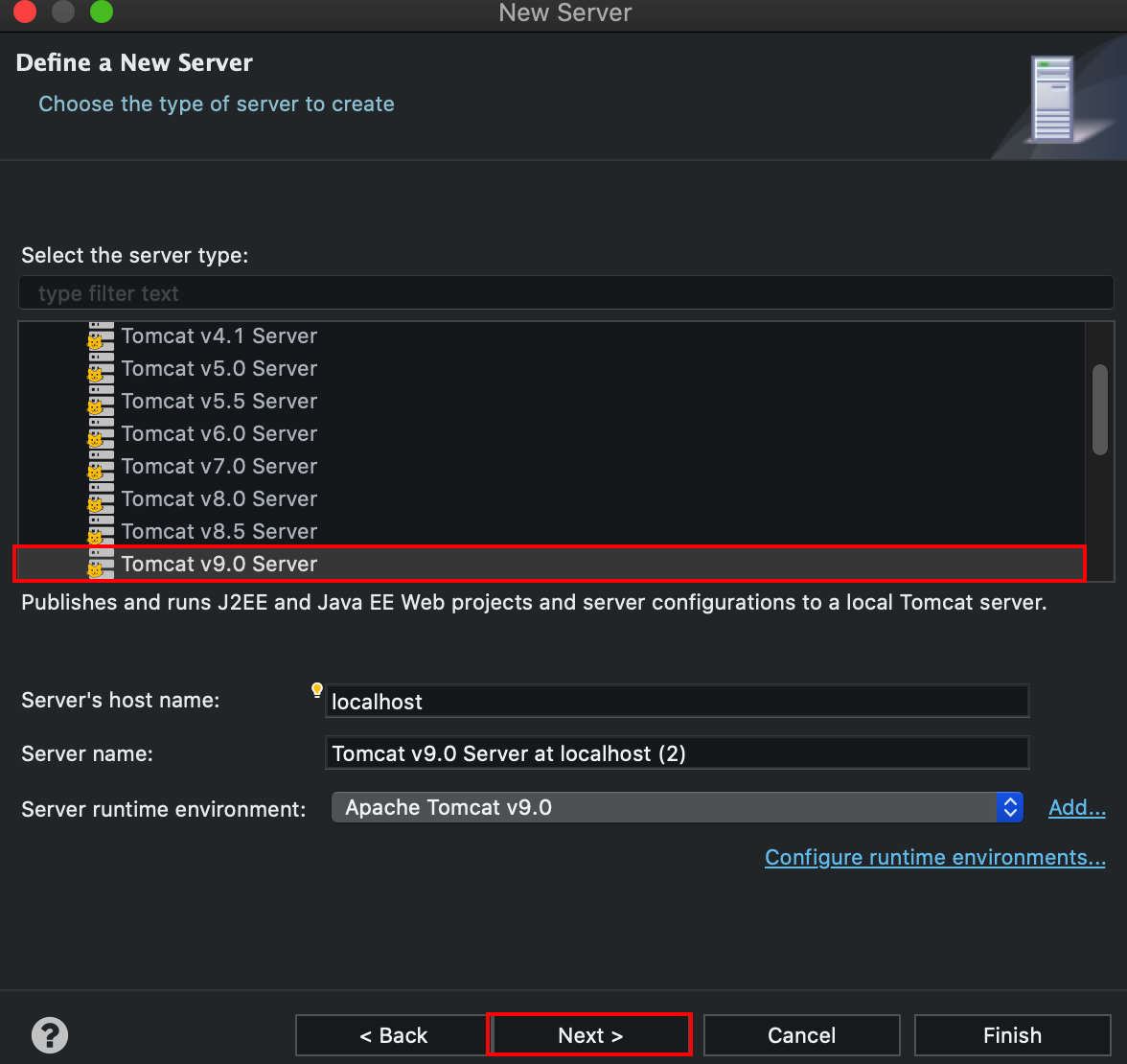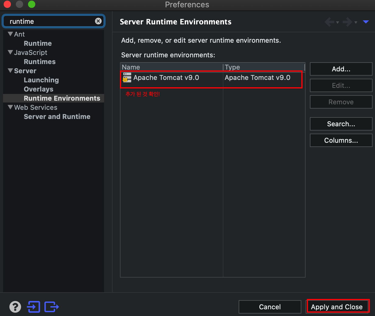1. 런타임 환경에 톰캣 추가