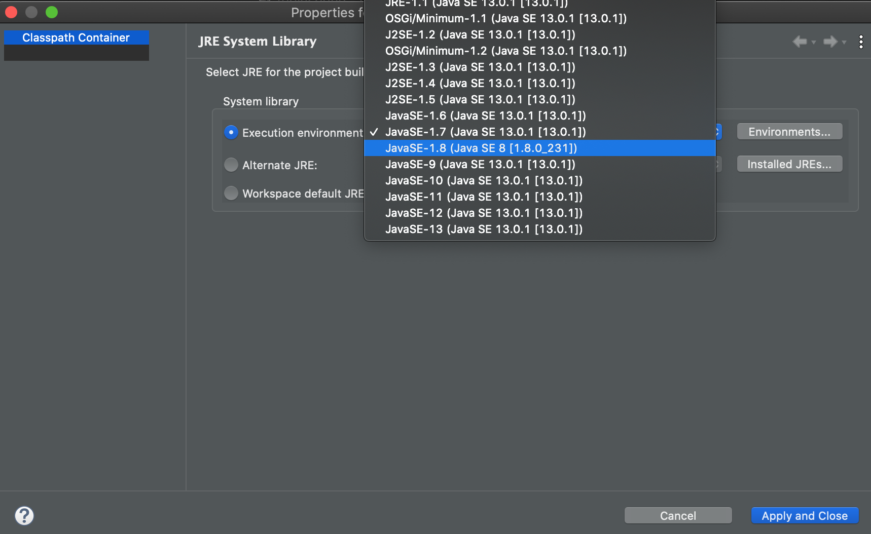 Execution enviroment를 선택하면 버전 목록이 나오는데