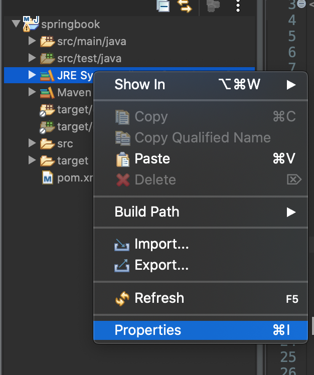 해당 프로젝트의 JRE System Library를 우클릭한 후